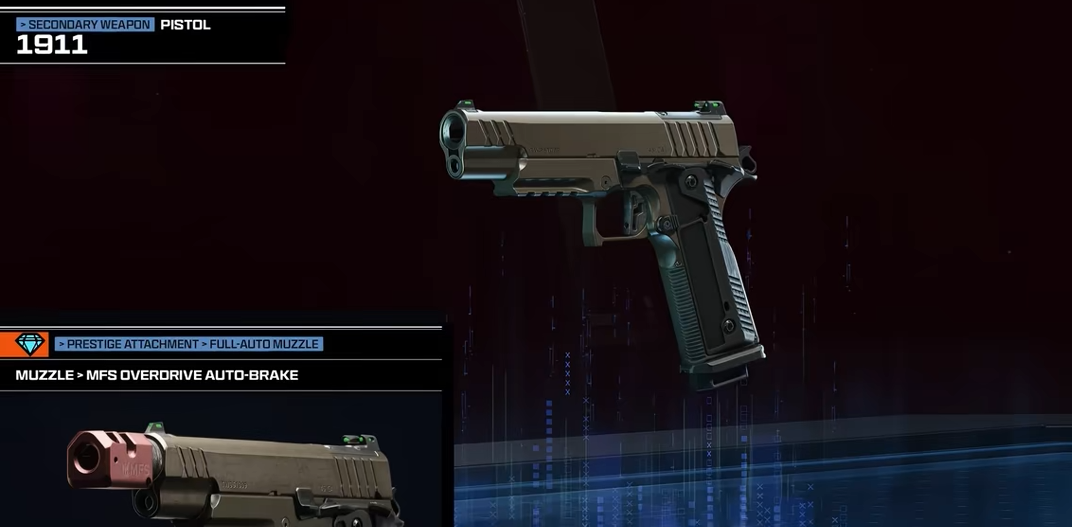1911手枪:有效射程优于标准手枪,后坐力偏大但归位速度极快,配合新上线的“巅峰枪口”配件可显著改善连发可控性。