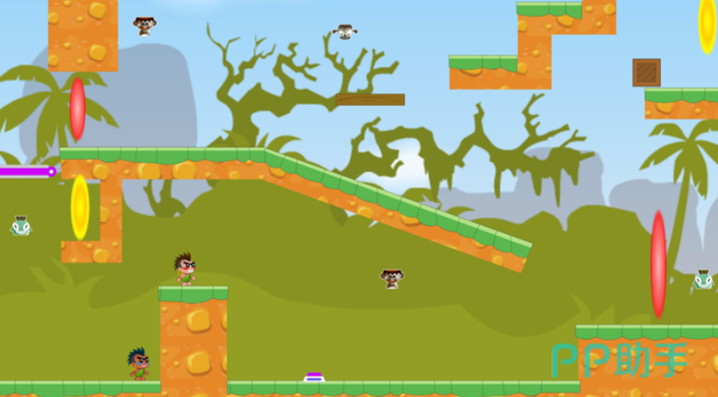 以史前文明为背景的横版合作闯关游戏,两位玩家分别操控呆萌原始人角色,在森林、洞穴、火山等主题场景中完成跳跃、推石、引火、触发机关等联动操作。美术风格清新自然,关卡结构借鉴经典双人解谜逻辑,操作仅需基础方向键+动作键,上手门槛极低但通关成就感强。