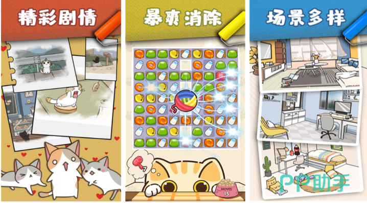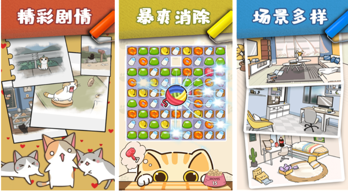 这是一款融合三消机制与家居建造玩法的休闲模拟游戏。玩家通过匹配消除获取装修材料,逐步扩建并装饰专属猫咪居所;近百只毛色、性格各异的小猫可被收养、命名与互动,每只猫拥有独立行为逻辑与好感度系统。关卡设计兼顾策略性与治愈感,画面采用柔和低饱和色调,营造出温暖静谧的社区氛围。