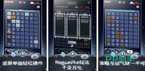 在经典扫雷框架中嵌入轻度RPG叙事元素,玩家扮演探索者进入未知区域执行排爆任务。每一关固定配置9枚地雷与4个宝箱,宝箱内含加速揭示、范围标记、雷区透视等实用道具,通关条件为安全开启全部宝箱且未触发任意地雷。关卡布局经算法生成,保证策略深度与重玩价值。