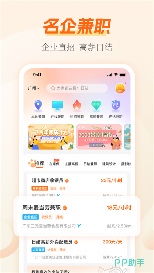 《兼职帮》这个平台对第一个接触兼职的小伙伴十分友好,界面看起来清新,操作也很简单,对手机操作陌生的小伙伴上来也很快就会使用。《兼职帮》搜集很多促销导购、家教、展会展会协助等门槛比较低的兼职工作,适合大部分想找兼职但是没有学历的小伙伴。操作可以一键提交,还可以在线和招聘方交流。对于同学们如果业余时间有很多时间利用起来赚些零花钱但又没什么社会实践工作的在校大学生来讲,这是一个练手的好地点。同学可以先弄几个小点的任务来操作,慢慢积累起本人的工作信誉度。