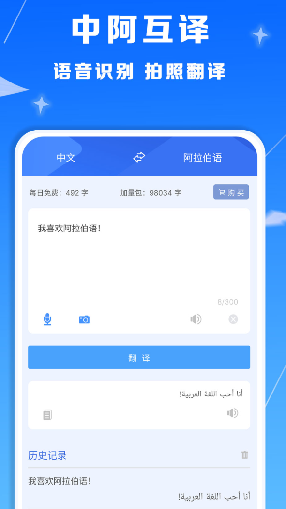 词库收录了60多万条中阿词汇和例句,日常用语、专业术语、文化俚语覆盖得比较全。界面可以在中文、英语、阿拉伯语之间切换,适应不同用户习惯。词典功能收录了多部权威典籍,单词释义、词性、搭配和例句都写得很详细,查词结果比较准确。在线翻译用的自然语言处理技术,译文读起来比较流畅自然。