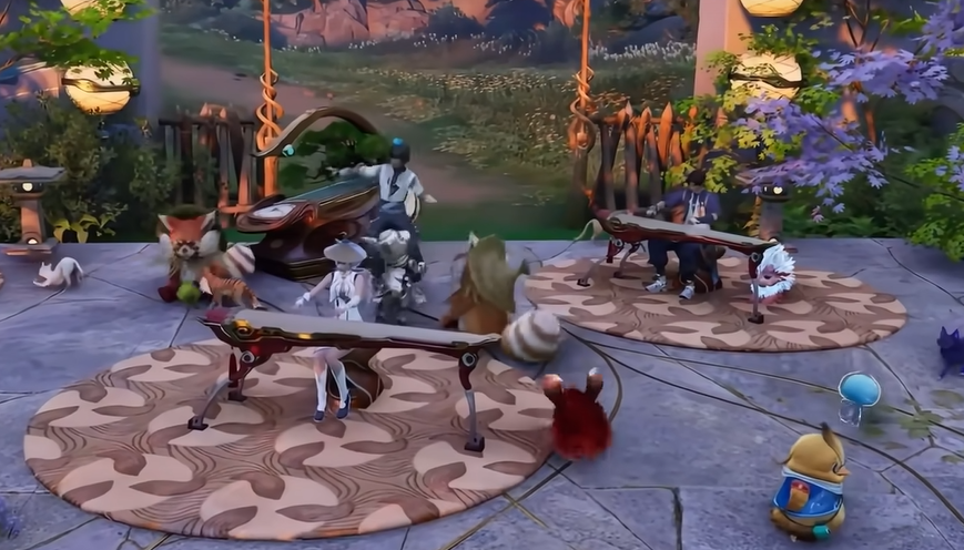 工坊升级之后,能解锁更多配方,家具、工具、料理都能做。料理这块挺重要的,打BOSS之前,做几个属性料理带着,效果很明显。迅捷酥饼加移速,坚韧炖汤加防御,根据要打的内容选合适的带上。做好料理还能摆出来办宴会,邀好友一起吃,吃了有BUFF加成,还能互动领奖励,算是社交玩法里比较有意思的一块。