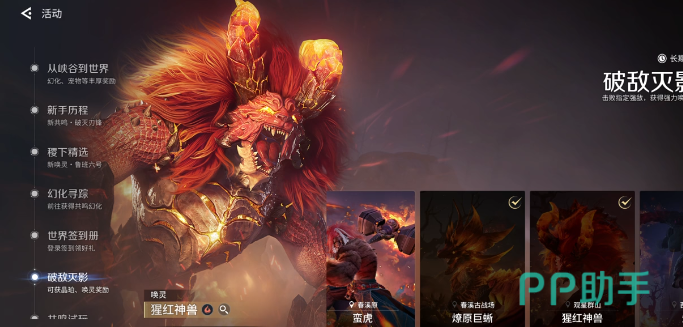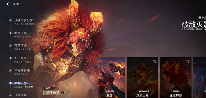 接着进入到破敌面影活动。这个活动就可以让玩家拿到200晶珀,只要提升装备等级,在符合要求之后就可以去挑战boss打赢之后就能够获奖。难度并不是很高,对于新手来说也可以轻松的完成。有共鸣试玩界面上就会出现三个试玩的英雄,千万别只做三个,可以点击更多共鸣。会有全部英雄的试玩任务,每一个英雄在完成之后都可以获得对应的货币,全部做完之后就会拥有200晶珀,这部分很容易漏掉,一定要记得做。