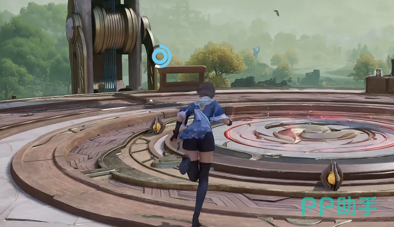 先从地上世界开始。打开地图传送到王者大陆,稷下春溪漫滩里春熙园的渡石,到了之后向后转,朝西南方向跑。第一个赋神令在云根木建筑的上面,先爬一小段,然后用三段钩索飞到最顶上就能拿到了。