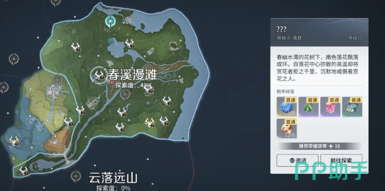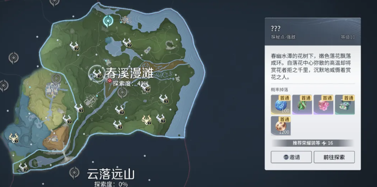 然后在整体大世界当中,如果是在野外途径当中路过了宝箱,大家也可以直接摸一下,如果是解密的宝箱,大家也可以放到后期再去解锁,打开地图之后,大家可以按照目前的地图进行筛选,找到适合自己当前等级去进行探索的区域,包括其中探索度如果达到百分百的话,大家也可以拿到该地区的奖励,将其中很多怪物的首杀拿到的话,再此时可以拿到更多的经验以及养成材料,前期的话,其实对于角色强度来说,如果大家觉得自身的战力不够,就要注意装备的更新,因为这里词条的话不用太在意,相对于前几天在大世界探索的流程来说,这里装备更新的速度还是比较快的,所以以品质为先就可以了。