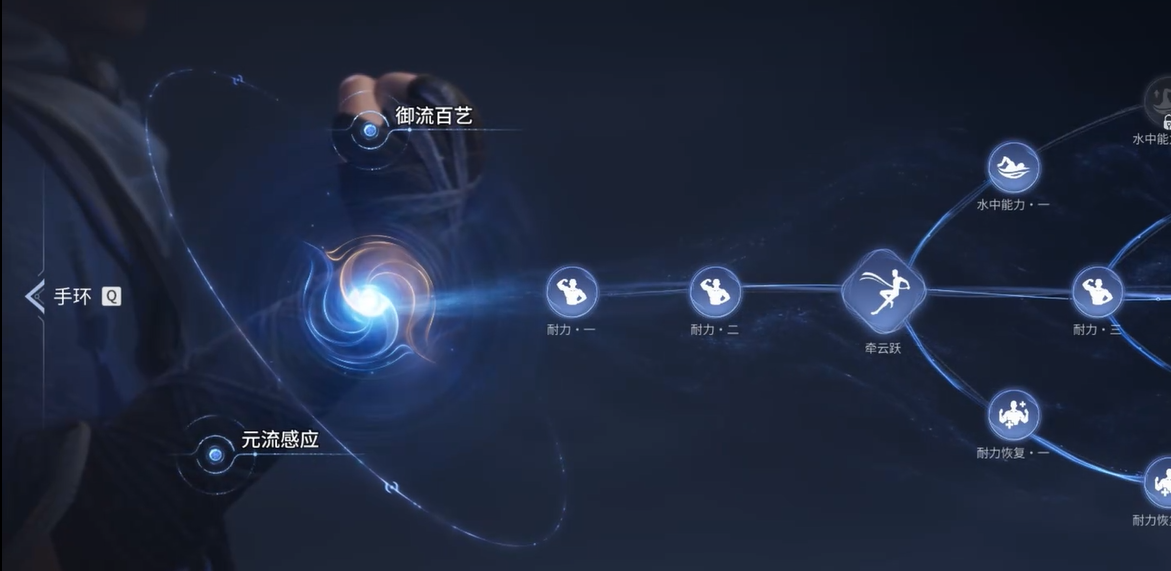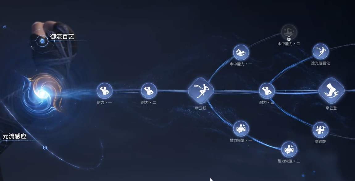 御流升级需消耗赋神令,该资源仅可通过觉醒任务及地图探索获取,前期总量稀缺,因此加点顺序至关重要。推荐优先级为:技能类 > 通用类 > 陆空类 > 战斗类 > 水中类。此排序基于系统定位——御流本质服务于探索效率提升,而非战斗输出强化;共鸣系统已能保障足够伤害表现,故战斗向节点可延后处理;水中类则因水下场景稀少、资源密度低、实际使用频率有限,不建议早期投入。