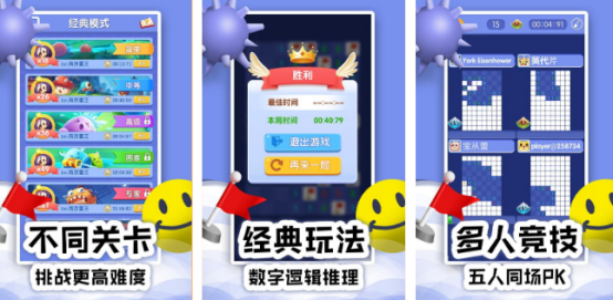 主打全球化联机对战体验,支持最多5人同场竞技。内置多套主题皮肤与动态棋盘特效,关卡结构经过专业平衡性调试,覆盖初级(9×9,10雷)、中级(16×16,40雷)、高级(16×30,99雷)三档标准配置。结合经典数字提示系统与触控优化反馈,还原PC端操作直觉,唤醒老玩家怀旧情绪的同时吸引新用户入门。