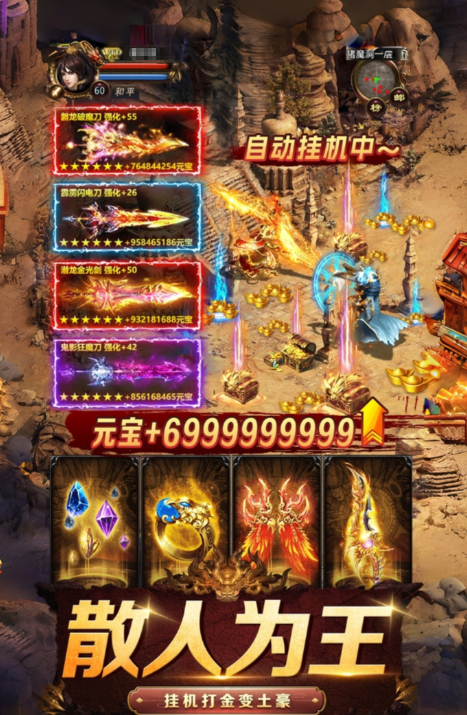 本作延续高爆率设定,怪物掉落优质装备与稀有武器的概率显著优于同类产品。支持万人同服竞技,皇城争霸战等标志性玩法节奏紧凑、对抗性强。同时兼容横版操作习惯,UI响应灵敏,适配多种终端设备,在画面表现、战斗手感与社交深度方面实现均衡优化。