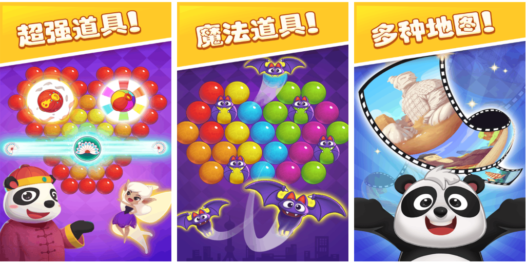 以国风熊猫IP为叙事主线的泡泡龙闯关作品。关卡地图风格多样,涵盖竹林、雪山、古庙等主题场景,支持逐步解锁。魔法道具种类齐全,包括范围清除、颜色转换、时间延缓等实用功能。剧情章节穿插推进,消除特效华丽饱满,整体耐玩性与内容厚度表现突出。