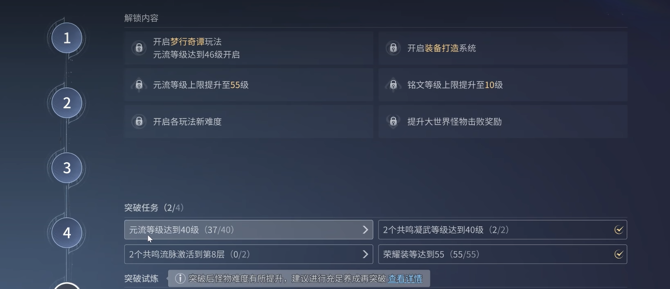开荒第一件事,先把主线推下去。游戏里很多功能、地图区域,还有部分角色的获取,都和主线进度挂钩。不推主线,很多东西根本打不开。支线和探索可以顺路做,但不要为了探索而耽误主线进度,前期资源有限,时间花在刀刃上才对。