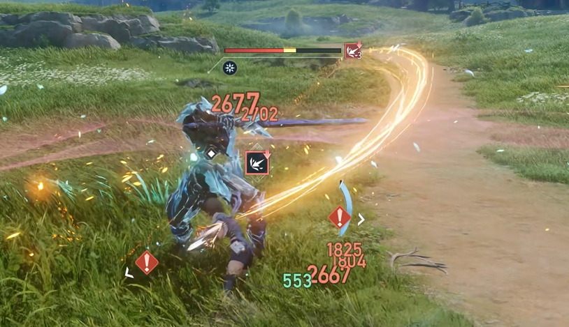 战斗方面,基础操作有普攻、技能、闪避和反击,这几个配合好能打出连招。普攻和闪避都能回复流能,流能是放技能用的,不要一下子全放完,要留着用。打Boss的时候有一个处决机制,Boss被打到破势眩晕的时候,这段时间内伤害越高,后面触发的处决伤害就越强。所以破势期间要集中火力,不要浪费这个窗口期。