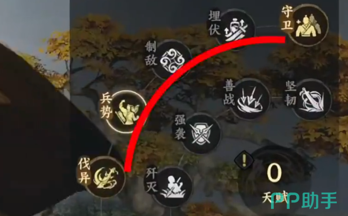 前期(40级以内)以快速铺开地图、稳定发育为目标,推荐按“伐异→兵势→守卫→埋伏”顺序点亮外围天赋节点。该路径兼顾兵力损耗控制、行军效率与基础防御容错,适合单人发育或小队协同开荒。进入中期团战密集阶段后,应逐步向内圈核心天赋倾斜,并补强“制敌”“守卫”“兵势”三项关键能力。