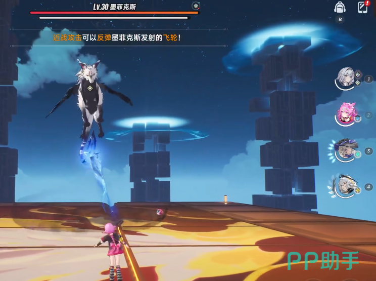 墨菲克斯具备阶段性机制:首阶段血量高于50%时,主要使用头槌与尾鞭进行近距攻击,推荐切换早雾等近战角色贴身压制;血量跌破50%后进入第二阶段,Boss升空发动大范围冲击波,攻击判定区显著扩大,此时应立即切至薄荷等远程角色,依托技能射程优势持续输出,并配合高频位移规避伤害。