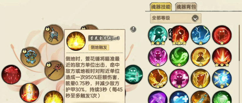 魂器技能并非孤立生效,其属性类型(如攻击加成、暴击强化、冷却缩减、防御提升、生存续航等)需与所选魂器套装形成协同效应。推荐优先采用同系列或机制互补的技能组合,以触发连携效果,提升实战容错率与连招稳定性。