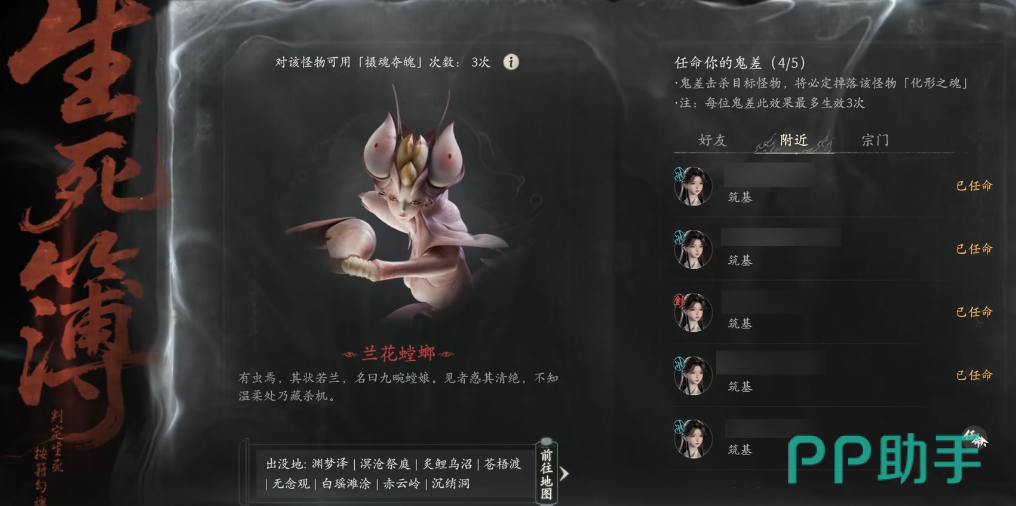 在掌握精怪特性基础上,生死簿集成【摄魂夺魄】专属交互功能:每日可触发3次野外捕捉机会。该机制具备概率判定机制,非必成功;同时支持邀请在线好友协同施法,显著提升单次捕捉成功率。