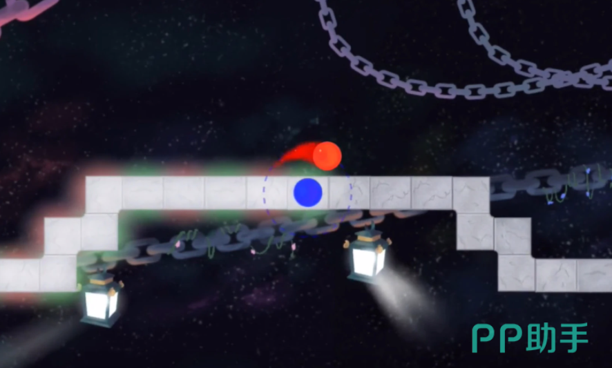 游戏共设6大主题章节,每章涵盖若干递进式关卡。难度曲线平滑但极具纵深:前期聚焦基础节拍识别与双球同步控制;中期引入多段变速与镜像轨道;后期则融合动态路径重构与密集复合拍型。所有配乐均为原创制作,旋律兼具空灵感与驱动力,配合低多边形视觉语言,营造出理性与诗意并存的独特氛围。