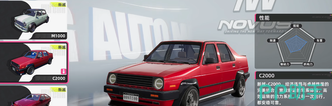 在《异环》这款竞速手游中,赛车种类丰富多样,车辆性能差异显著。对于追求赛道霸主地位的玩家而言,合理选择载具是制胜关键。新越C2000作为游戏内默认解锁的新手车型之一,凭借简洁流畅的外观设计与稳定可控的操控逻辑,常被新手玩家优先选用。那么,新越C2000在实战中究竟表现如何?本文将从性能定位、驾驶体验与进阶适配性三个维度展开分析,为玩家提供客观参考。