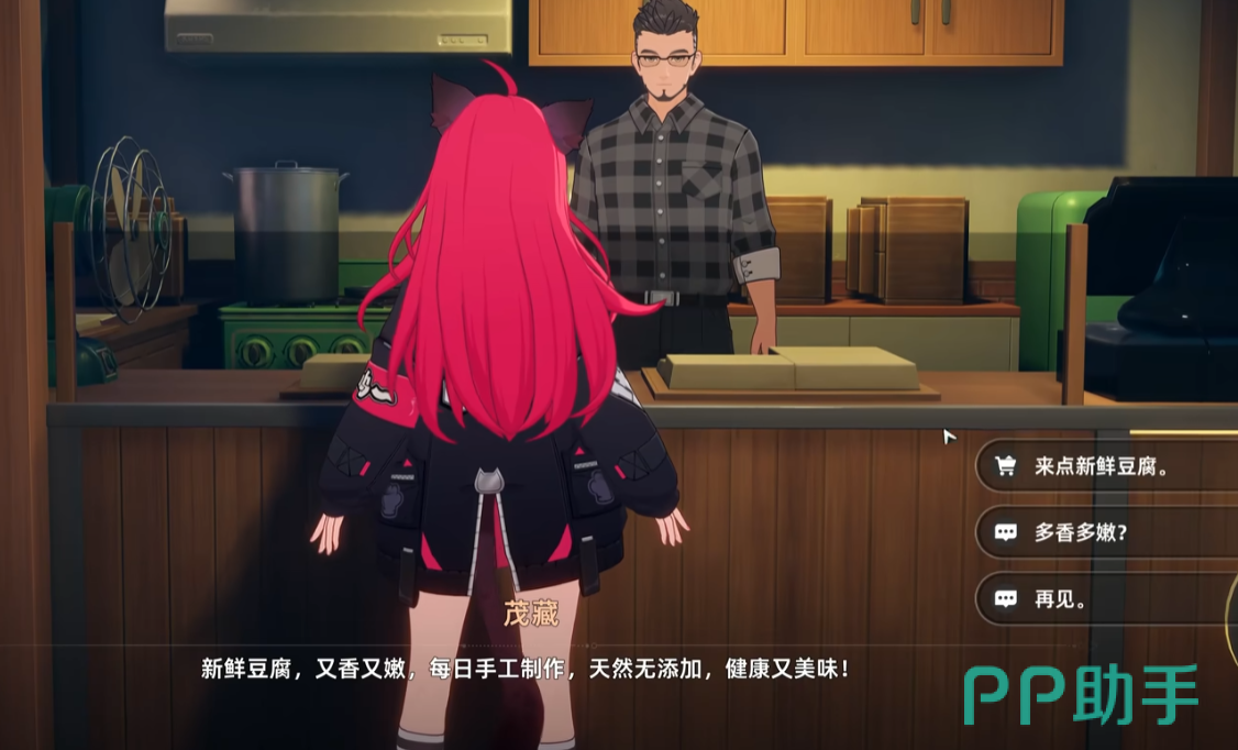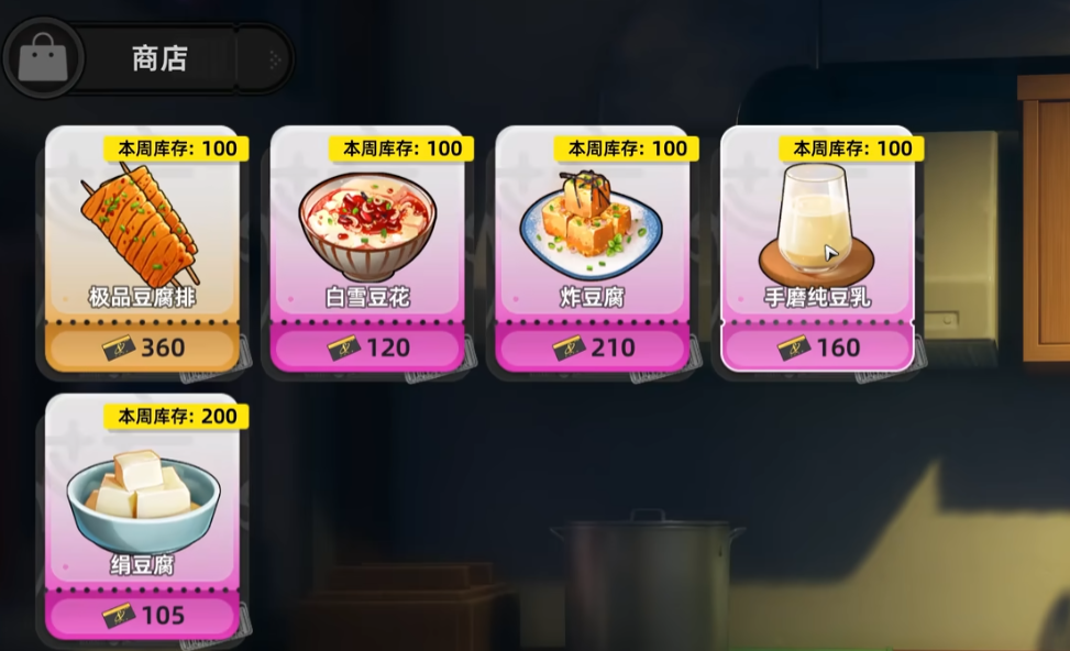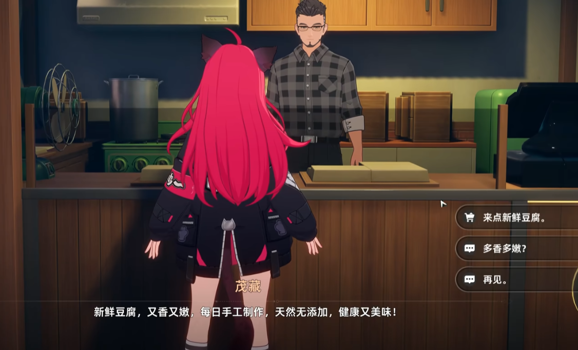 店主名为茂藏,靠近后触发对话,选择首个选项即可进入商品选购界面。当前上架品类包括豆腐排、白雪豆腐花、炸豆腐、手磨纯豆乳及绢豆腐五种,所有商品实行周度配额制,总量限定为一百份,需合理规划使用节奏。若选择第二项对话,则可了解豆制品工艺渊源及风味特点,拓展世界观认知维度。
