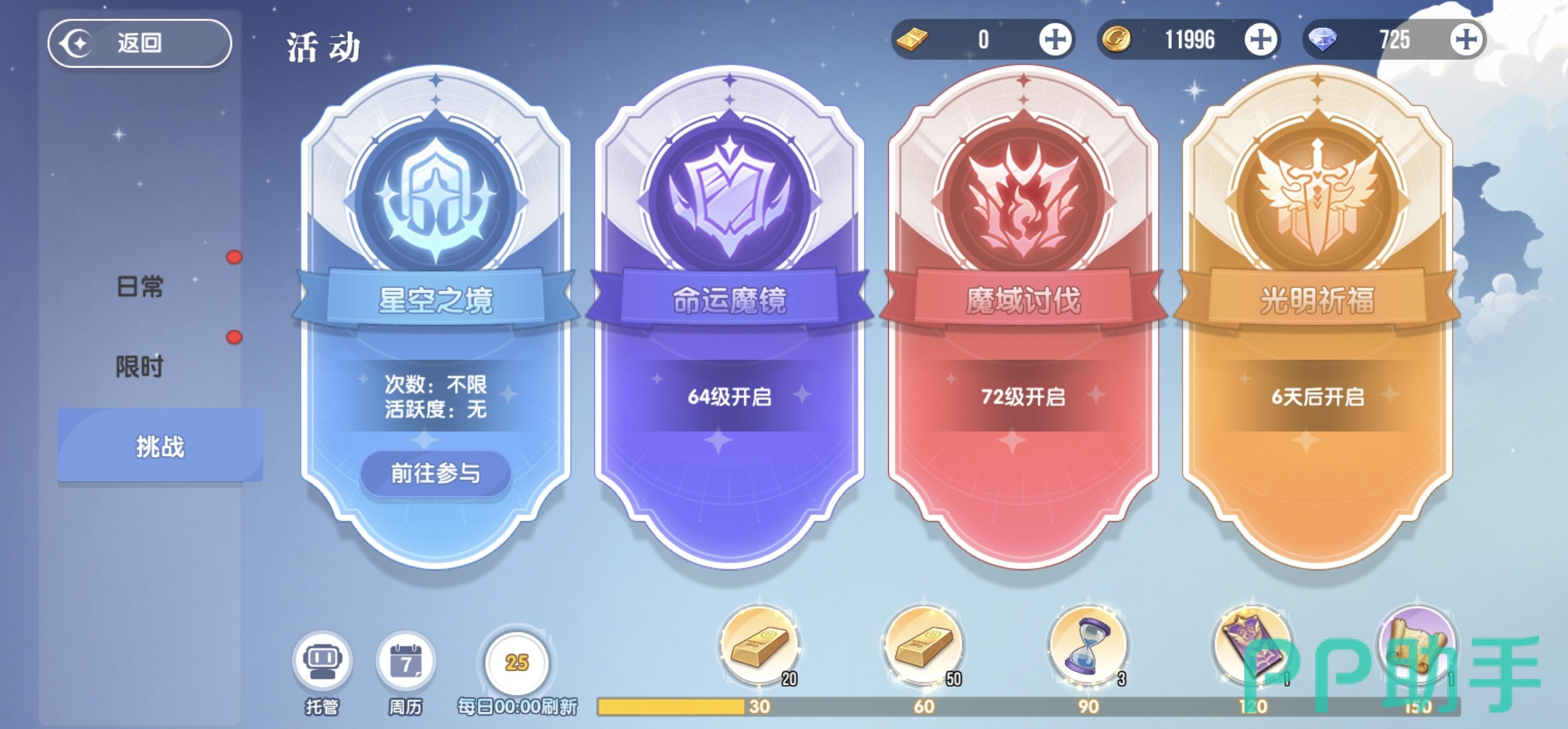 该玩法于角色达到指定等级后自动解锁,入口位于主界面右上方“星空”图标。进入后可见各关卡标注明确推荐战力值,建议玩家优先确保自身战力不低于该数值再发起挑战——战力缺口过大时,失败概率显著上升。成功通关可稳定获取金块、时光沙漏及宠物经验三种核心资源,其中宠物经验为提升宠物等级的核心材料,产出效率远高于其他日常途径。战斗模式支持自动与手动切换:前期低难度关卡可启用自动战斗节省时间;但自第3-20层起,Boss技能具备明显前摇与范围判定,需玩家主动走位规避,否则即便战力达标亦可能被瞬秒。