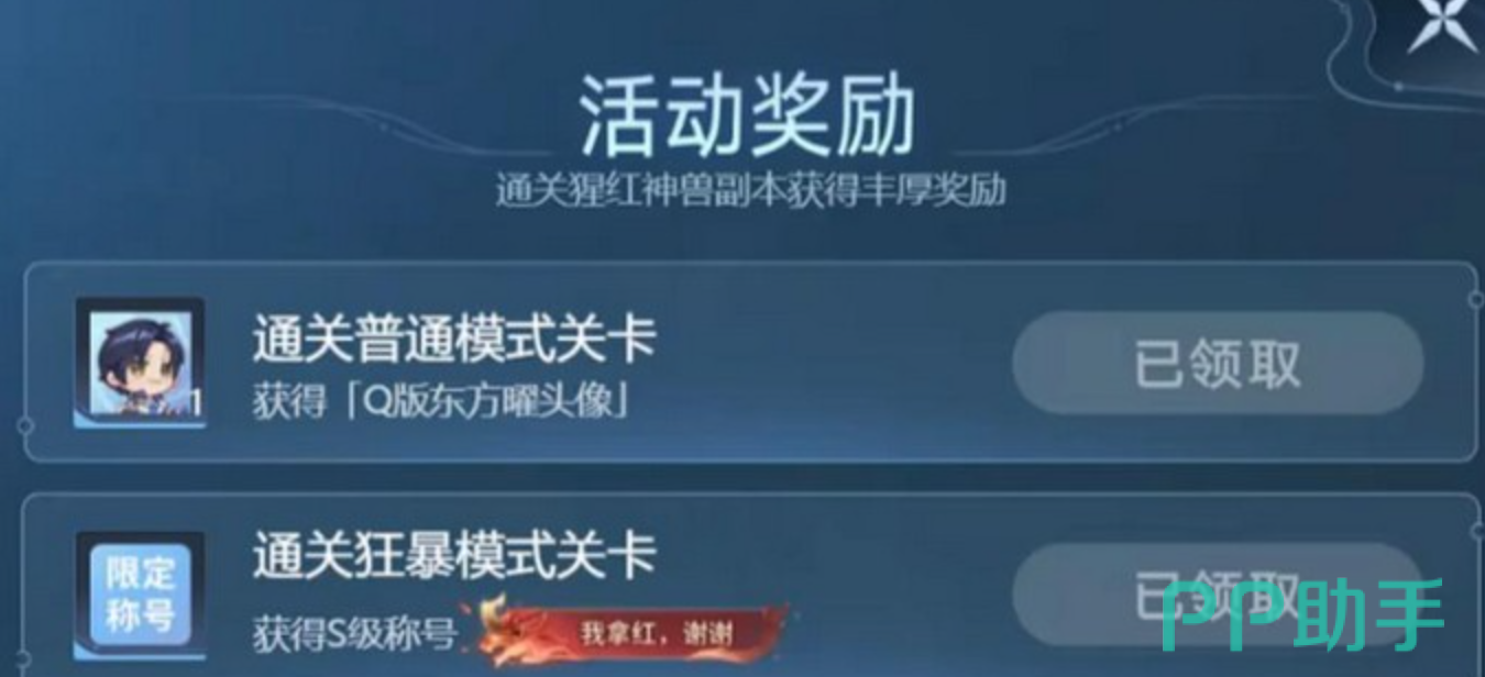 要参与猩红神兽挑战,玩家需先完成前置预热活动——“东方曜的梦境”。该活动以云游戏形式展开,玩家将在虚拟战场中直面标志性高难度目标:猩红神兽(即红BUFF形态BOSS)。成功通关后,除可解锁东方曜Q版头像外,还将获得极具辨识度的称号“我拿红,谢谢”,成为个人战绩的视觉化勋章。