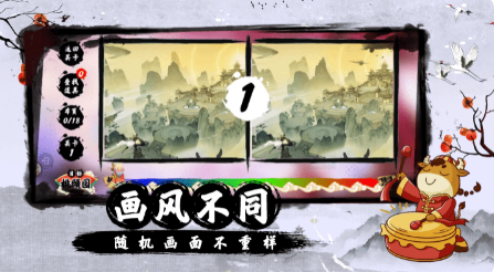 深度融合中国传统视觉语言,画面采用工笔重彩技法呈现山水楼阁、节气民俗、仙侠幻境等东方意象。核心玩法严格遵循双图对比逻辑,差异点分布兼顾显性与隐性特征:前期突出色彩明暗对比与器物摆放位置变化;中后期引入水墨晕染层次差异、印章篆刻笔画缺省、云纹走向微调等高阶设定。全系列关卡无重复设计,持续激发探索欲与审美感知力。