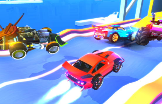 以赛博朋克美学为视觉基调,赛道设计横跨霓虹都市高架、废弃工业区、悬浮磁轨桥及山地盘旋公路等多元地形。每局匹配三名全球玩家进行实时对抗,引入氮气蓄能—爆发加速—空中翻转—精准落地的复合操作链,同时集成漂移积分系统与障碍规避判定机制,强调技巧组合与时机把控。