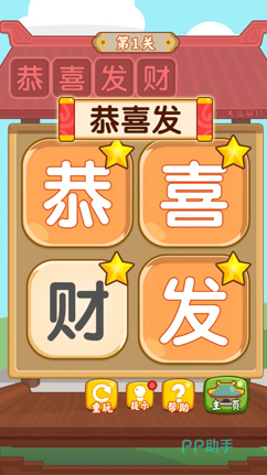 以经典四字成语为知识载体的消除类益智游戏,收录《汉语成语词典》中高频成语超千条。通关机制基于“提示—识别—点击”三步流程:每关给出成语释义或情境描述,玩家需从乱序字阵中精准点击组成正确词语。角色成长体系与关卡进度绑定,每完成10关可解锁新服饰或称号,强化正向反馈循环,提升持续学习动力。