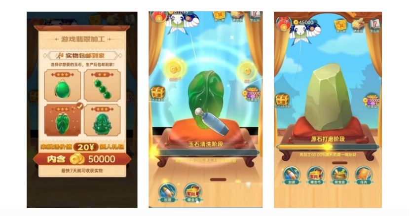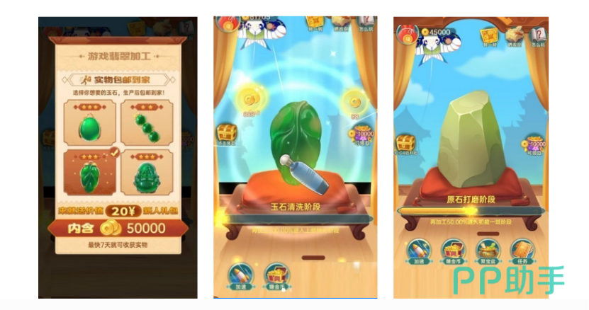 化身翡翠行业从业者,在虚拟世界开启专业成长之旅。本作融合原石挑选、切开鉴定、手工打磨、抛光塑形及展馆陈列等真实工艺流程。随着等级提升,可解锁更高品级翡翠原石——其内部结构更复杂、风险系数更高,但成品价值也显著跃升。游戏采用渐进式难度设计,兼顾知识性与趣味性,让玩家在操作中理解“赌石”逻辑,感受从璞玉到珍宝的蜕变过程。