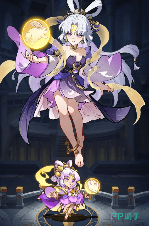 来自异界空间的风系辅助兼输出型角色,兼具清丽形象与灵动机制。主动技“兔起”触发玉兔灵识突进,以风属性能量形成双段范围打击,并附带短时聚怪效果;“素月流光”则展开玉轮法阵,掀起携桂花气息的旋风,完成四次风系连击,具备良好的节奏控制与环境干扰能力。
