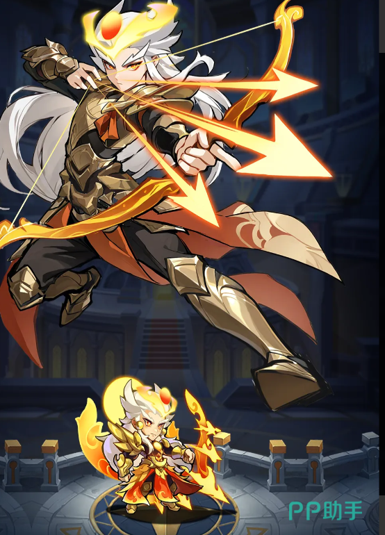定位为高频率火系群攻输出,被玩家誉为“神箭手”。其核心主动技“落日弓矢”可连续发动三段火属性打击,覆盖目标区域全体敌人;另一技能“金乌坠空”则召唤多只金乌自天而降,实现五段火系范围伤害,在持续压制与爆发衔接方面表现突出。