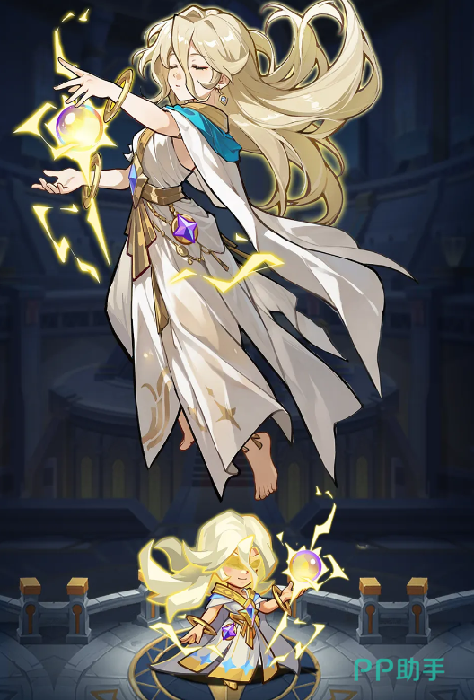 神秘系雷属性法师,仅在重大剧情节点现身,承担战略指引职能。技能“神光”通过水晶球凝聚魔力,在指定区域构建法阵,自上而下释放六次雷系能量冲击,具备极高的单区总伤与命中稳定性;“雷鸣”则以施法者视角锁定方向,开启眼部符文引导天雷降临,对范围内所有单位造成三次雷属性打击,适合应对突发团战或高机动目标。