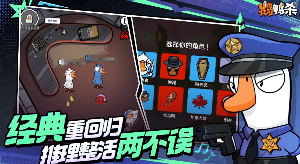 这是一款主打实时语音协作与逻辑对抗的非对称竞技手游。每局8–16人匹配,玩家随机分配为鹅、鸭或中立角色,通过完成任务、推理身份、发起投票等方式推进进程。角色行为差异显著——鸭子可伪装破坏、干扰视野,鹅需高效协作并保持警觉。地图交互丰富,任务类型多样,且支持自定义房间与规则配置。快节奏对局(平均8–12分钟)、低入门门槛与高策略上限,使其成为聚会开黑与通勤消遣的优选。