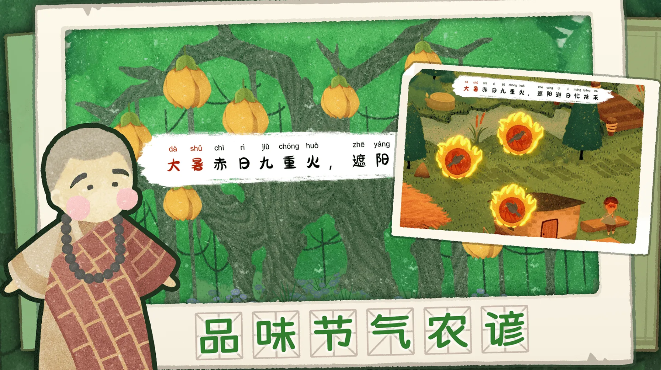 本作以二十四节气为叙事主线,将立春、雨水、谷雨等春季节气转化为可交互剧情节点。每个节气均对应独特谜题、神话小剧场与生态变化提示,例如惊蛰时昆虫苏醒、春分后昼夜平分等现象均在游戏中具象呈现。内置节气绘画模块,允许玩家依据当季物候自由创作,输出个性化数字画作,强化文化理解与艺术表达的双重体验。