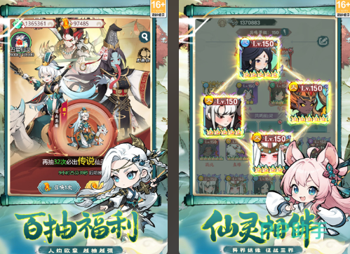 本作采用纯正国漫画风,融合东方三国、西游记与西方希腊、北欧等神话体系,实现跨文化角色共存。竖屏操作适配移动端,内置智能挂机系统,降低日常负担。支持多人协作副本,玩家可邀请好友组队探索大地图;战斗采用火、水、风、土、光五大元素相克机制,布阵逻辑清晰,策略维度丰富。