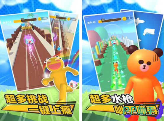 本作融合跑酷与水枪射击机制,玩家扮演特工角色,在简约清新的美术风格中穿梭于多变关卡。途中需灵活使用水枪击退敌人,同时应对各类障碍物。游戏提供多样可切换装备,配合不同赛道触发专属剧情事件。角色形象简洁鲜明,总量丰富,支持逐步解锁体验。