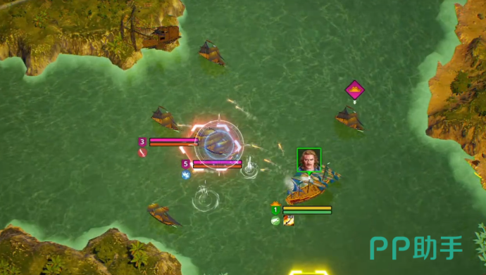 游戏里会设置大量探索玩法,需要驾驶船只前往海域的不同位置搜寻隐藏的村庄地标,在特定的位置可以获得补给特产,前往村庄也有机会提升好感度,在探索的过程中,玩家可以前往大陆深处,完成多种不同的陆地任务挑战,在探索过程中会遇到大量对手,玩家需要通过船只开启回合制的海上战斗,在挑战过程中要灵活控制船帆方向,船帆会直接影响船只在游戏里的航行角度,玩家还需要合理控制武器释放技能。