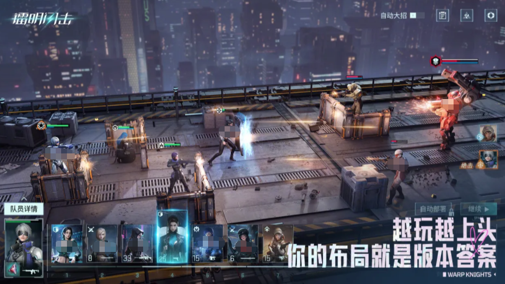 挑战开启之后会设定一个有大量网格组成的战场,玩家可以直接把角色传送到特定位置,开启一场俯视视角的塔防对战,对手出现之后,角色会自动攻击,要按照每个角色的属性合理安排位置,保证整体战力,感觉战力不足的玩家,可以尝试去游戏里提升角色装备,比如对各种装甲武器进行等级提升,角色能力只是一方面,在挑战过程中,玩家要灵活组队,确保整个队伍的能力均衡。
