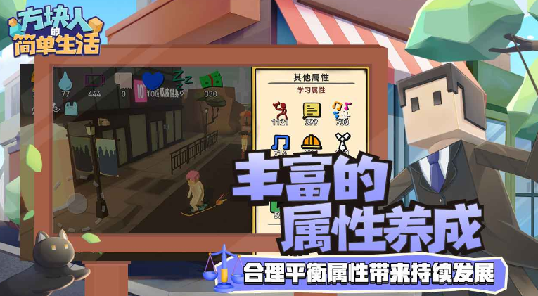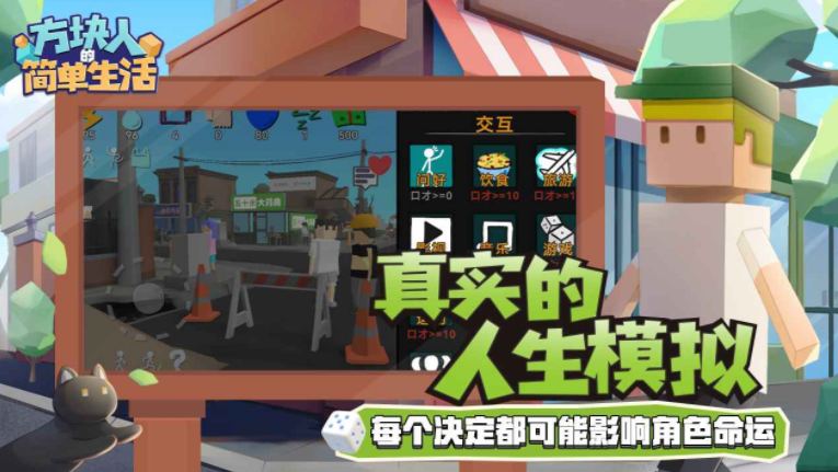 方块人的简单生活可以完全模拟当下,每个成员都可以操控方块人,进入大城市逐渐站稳脚跟,在这个过程中要不断去更换工作,提升自身能力,通过合理的规划决策,才能在城市中生存的更长久。