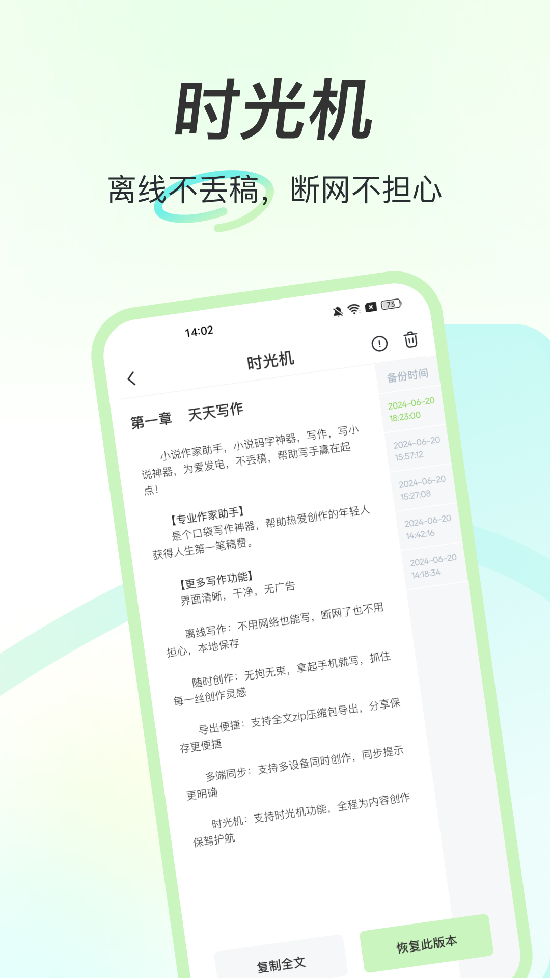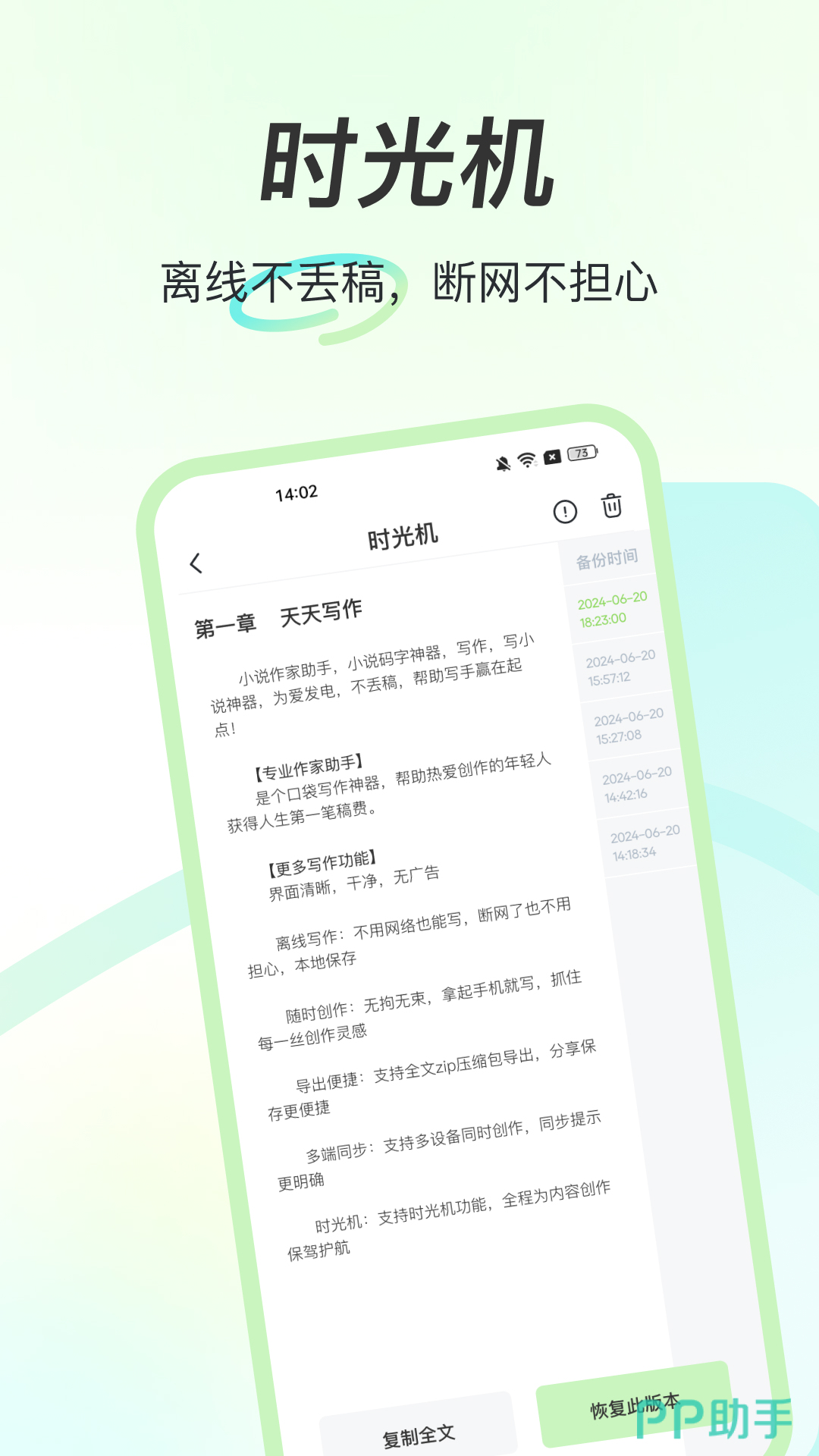 主打轻量级创作体验,界面简洁无干扰,适配碎片化写作习惯。支持离线编辑与自动云同步,内置中文语法校验模块,可实时提示错别字、搭配不当及标点错误;针对小说类文本,额外提供人物对话节奏、场景描写密度等专项分析维度。