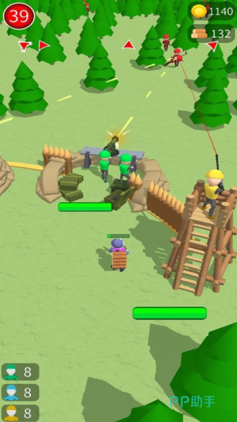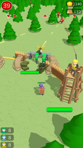 融合塔防与资源采集双核心玩法,玩家需在限定时间内完成木材采集、基地建设、单位部署全流程。树木不仅是资源来源,亦可作为可破坏地形参与战术构建:如截断主干形成临时路障,或利用倒伏方向阻断敌方行进路线。每座防御塔具备功能定位区分——箭塔侧重单体输出,火炮塔覆盖范围打击,工程塔提供持续增益效果。