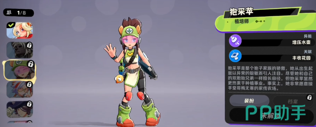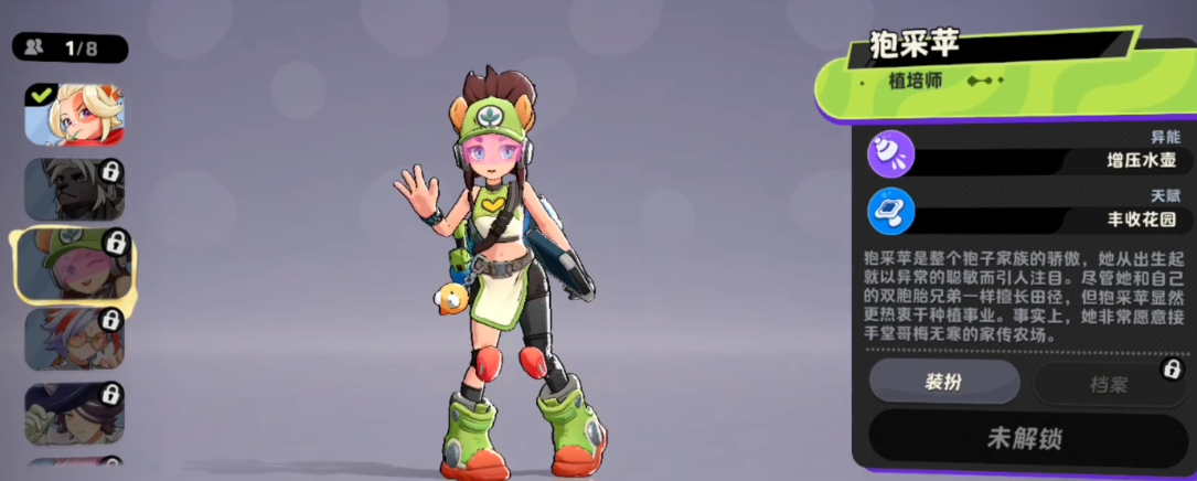 中后期装备体系成型后,孢采苹的战术价值显著提升。其表面身份为植物培育专家,实则掌握高压流体操控异能,可通过增压水壶喷射形成范围减速与涂鸦干扰效果,有效压制依赖视觉标记与环境交互的敌方单位。该角色在高难度Boss战及限时挑战中表现优异,尤其适配需要持续控场与节奏调控的作战场景。