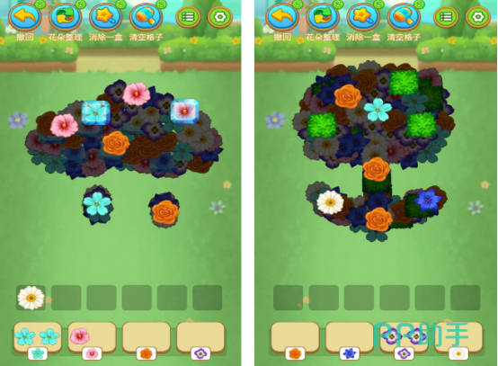 基于堆叠式结构设计的消除游戏。画面中多层鲜花紧密堆叠,玩家需依据顶层可见花朵颜色,拖拽匹配相同色系的花朵完成消除。随着关卡推进,堆叠层数递增,解题逻辑复杂度同步提升,考验空间预判与路径规划能力。