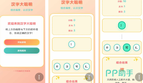 聚焦汉字构形规律,通过拖拽偏旁部首组合成字的方式强化字形理解。关卡难度阶梯式递进,从单一部首匹配起步,逐步过渡至多部件复杂汉字拼合。界面采用高饱和度配色方案,内置智能提示系统,每完成一关可获得星星奖励,增强持续参与动力。