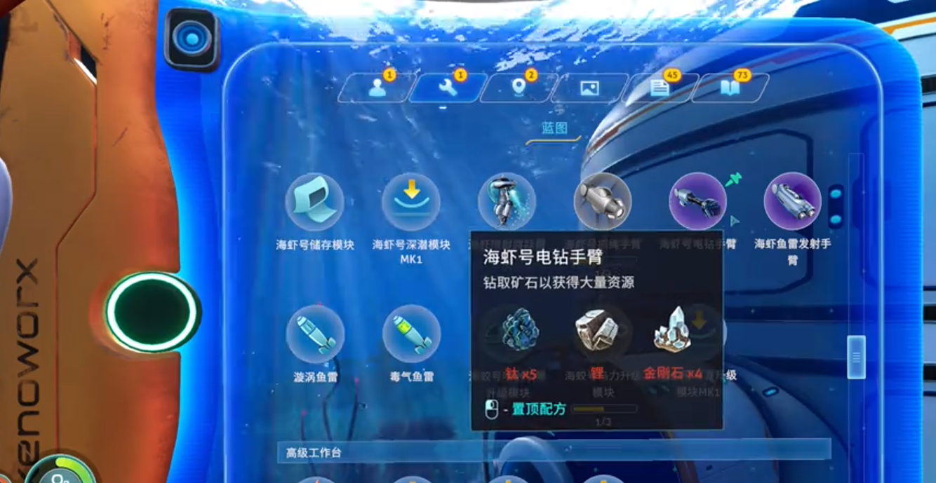 当玩家有了基础形态的海虾号之后,想要提高它的战斗力,玩家这时候就需要升级改装,比如可以给他安排两个强大的手臂,左手鱼雷发射臂,右手电锯臂,远近距离可以直接搭配,在探索深海的时候没有任何的压力。不得不说,这个如果被合理的运用,不管是在攻击深海的生物,还是开采大型的矿石,它都是特别好用的,因为那些藏在深海岩壁里的稀有资源,能够让玩家轻松的采集。
