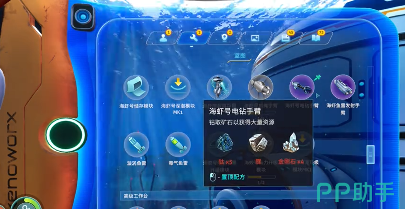 既然玩家想要制造海虾号,那么就需要准备对应的材料,比如一个塑钢锭,一个动力电池,一个釉瓷玻璃和一个智能芯片。这些材料看上去并不是特别的多,但是却要玩家到深海各个角落去收集,比如说塑钢锭的话就需要特殊的材料熔炼,釉瓷玻璃在深海特殊点位获取。智能芯片,则需要搭配电路元件跟精密的零件,所以说玩家在获得对应材料的时候,相对来说是比较困难的,但是也能够让玩家获得探索的乐趣。
