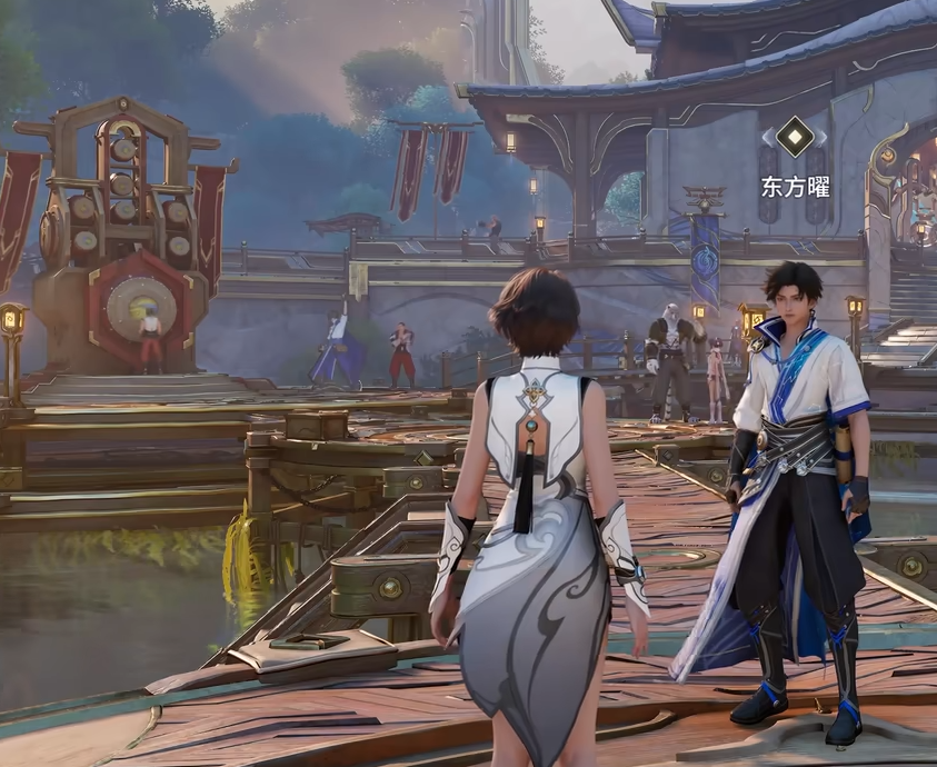 登陆港口后,首项任务为与东方曜完成初始交互。随后需沿指定路径行进,途中散布的非玩家角色(NPC)将提供背景补充信息,同时生动刻画东方曜兼具幽默感与强烈自尊心的人物特质。主线提示更新后,目标转为与西施建立联系。在触发对话前,建议优先与周边NPC充分互动,以获取隐藏世界观碎片与趣味支线伏笔。