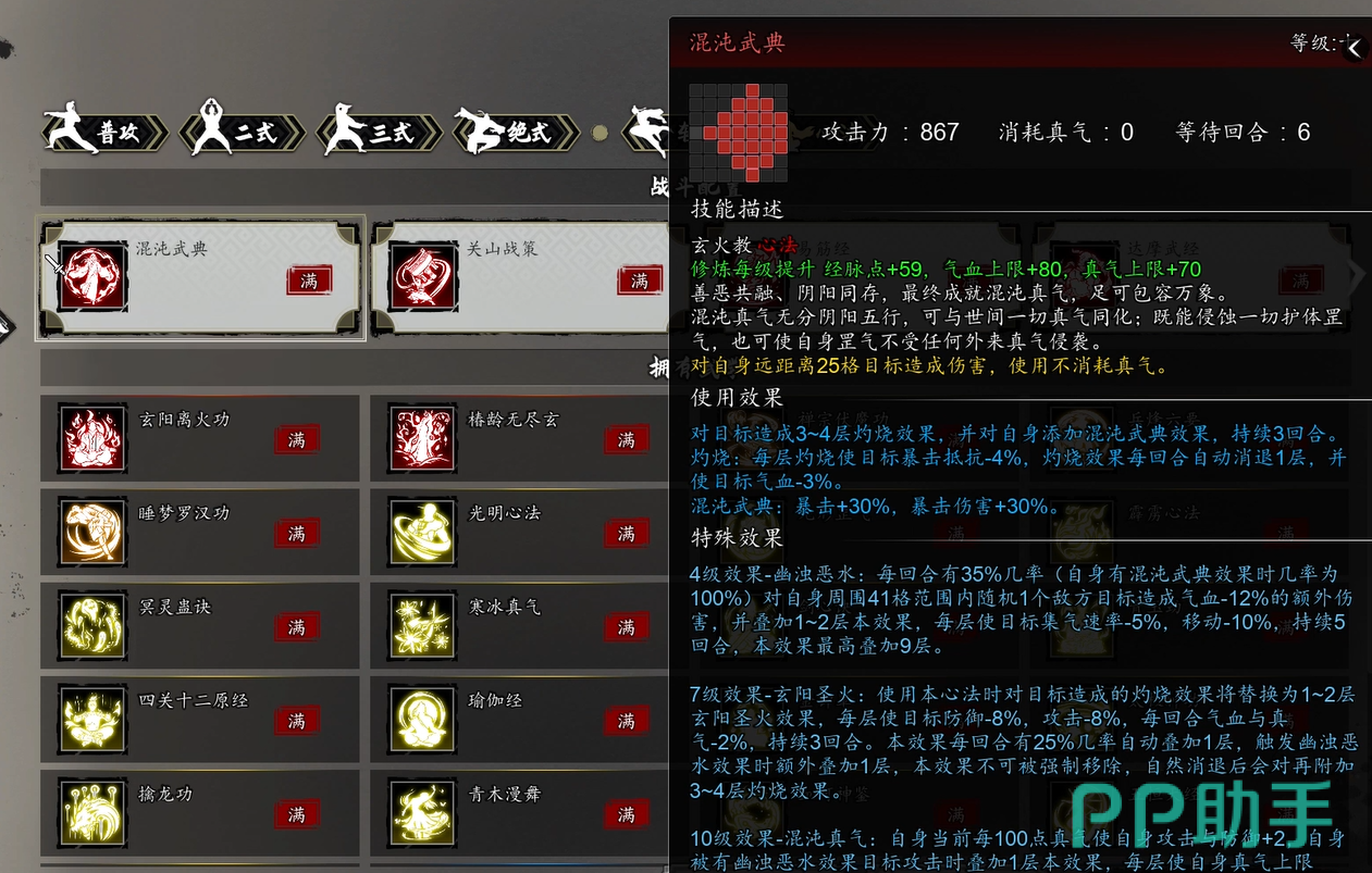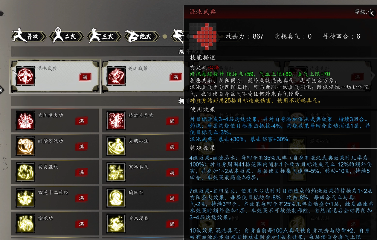 还有一些玩家会把混沌武典跟关山战策这个心法搭配起来用,据说可以进一步提升数值效果。另外这本功法好像跟游戏里的一些双修剧情有关联,不过目前版本还没有完全开放这个机制,具体要等后续更新才知道。