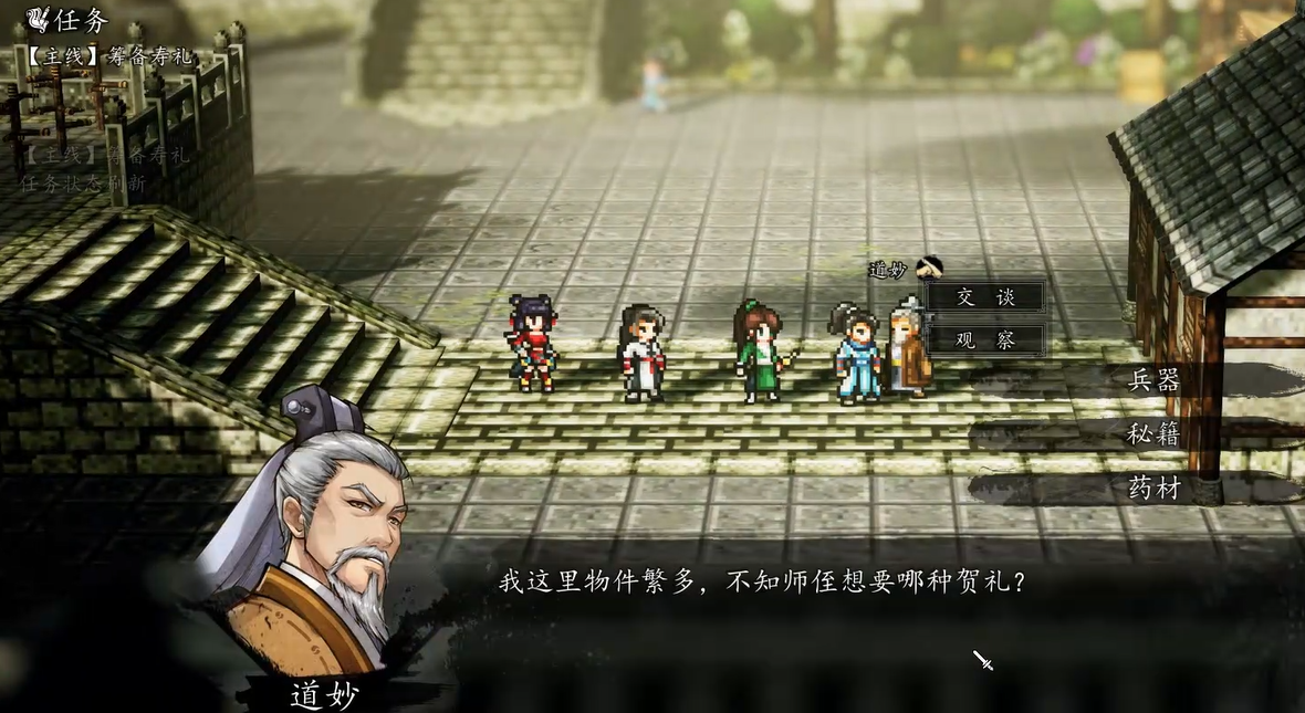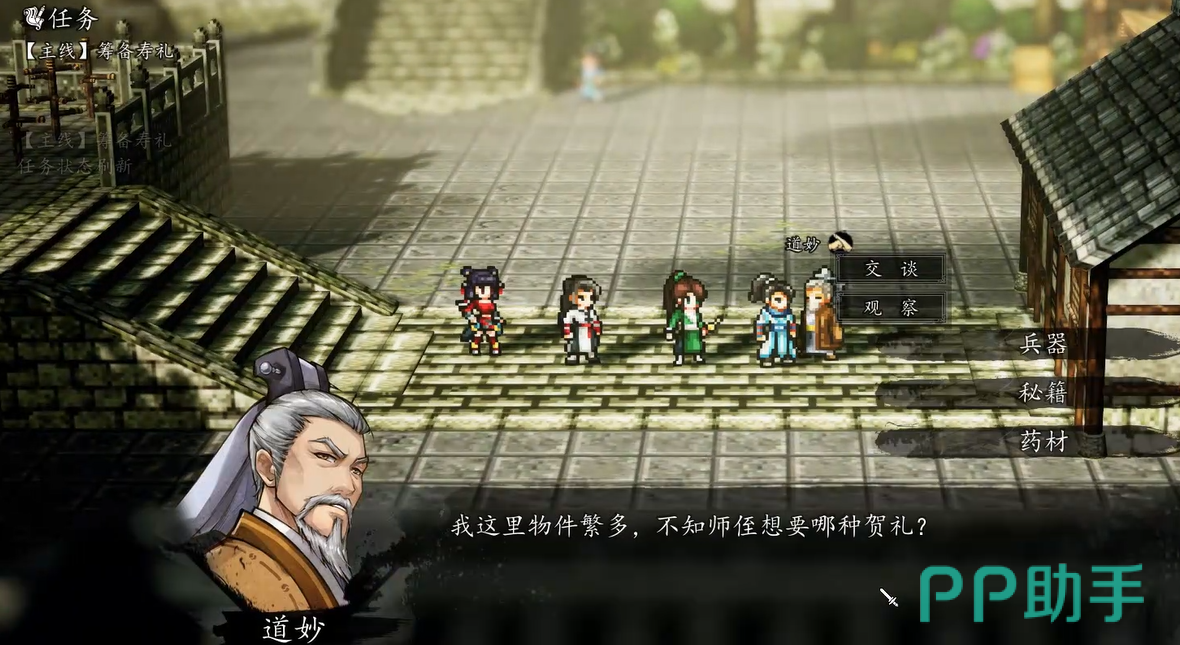 刚开始接这个任务的时候,需要先去地图上,找一个叫道妙师叔的NPC。找到人之后点他聊天,对话框弹出来的时候注,意看上面的字。这时候要在几个词里面,去点药材那个选项,点完之后对话就结束了。做完这一步,就可以关掉界面动身往天鸣村跑,到那边去接着做后面的事情。在这个游戏设定的路线里,关于祝贺生日的这趟行程,是从樊城那边开始算起的。玩家要跟着界面上的指引,一路走到天水城,主要的目的,就是去参加程老爷子的宴会。去天水城的路上其实不会太无聊,中间会弹出几段比较长的剧情对话。看着看着就会发现,杜芊芊的身份没有表面上那么简单,她背地里居然是灵蛛使,这层身份,确实让人看了觉得有点意外。