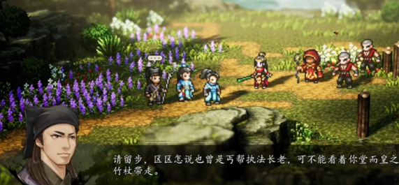 进入丐帮分舵之后,首先会触发一段剧情动画。看完剧情之后,马上就要面对一场战斗,这场战斗难度不算太高,按照正常打法基本都能过。战斗结束之后,队伍里的几个队友会各自说一些话,表达自己的看法。这时候需要去找一个叫龚进的NPC对话,跟他聊完之后,再去找左江龙,把刚才在分舵里发生的事情告诉他。这样丐帮之法这条支线任务就算完成了。